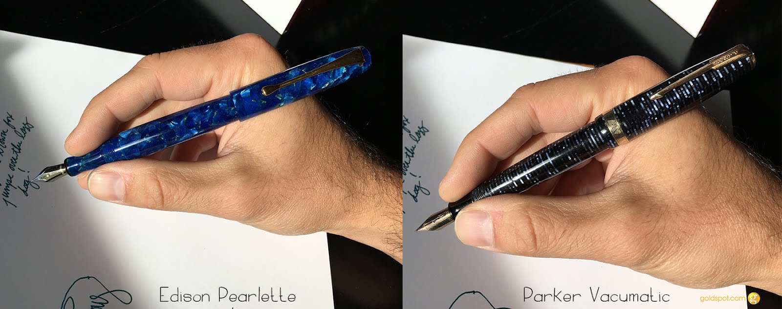 The Edison Pearlette is part of the production line of fountain pens, which are available at many fine writing shops (both online and brick-and-mortar). The advantage with the production line is the pricing. A custom Edison that is ordered directly (in any material of your choosing) will run you at least $250 for a steel nib. One of these production model Edison pens is only $149 for the steel nib and $274 for the 18kt gold nib. For their production line, the Edison Pen Co. usually picks stunning pen materials that appeal to a wide audience. The Lapis Lazuli is certainly no exception. Come check it out on the and enjoy free shipping on any Edison fountain pen shipped within the USA.