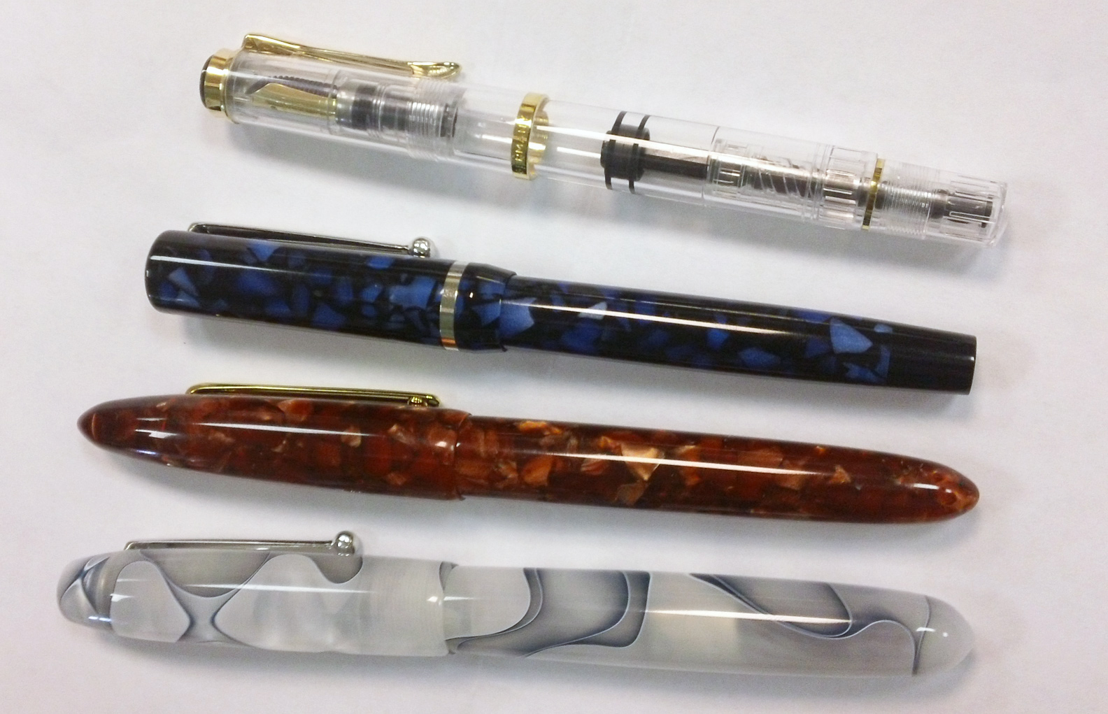 | Top to Bottom : Pelikan M200 Demonstrator, Edison Beaumont, Edison Herald, Edison Collier |
