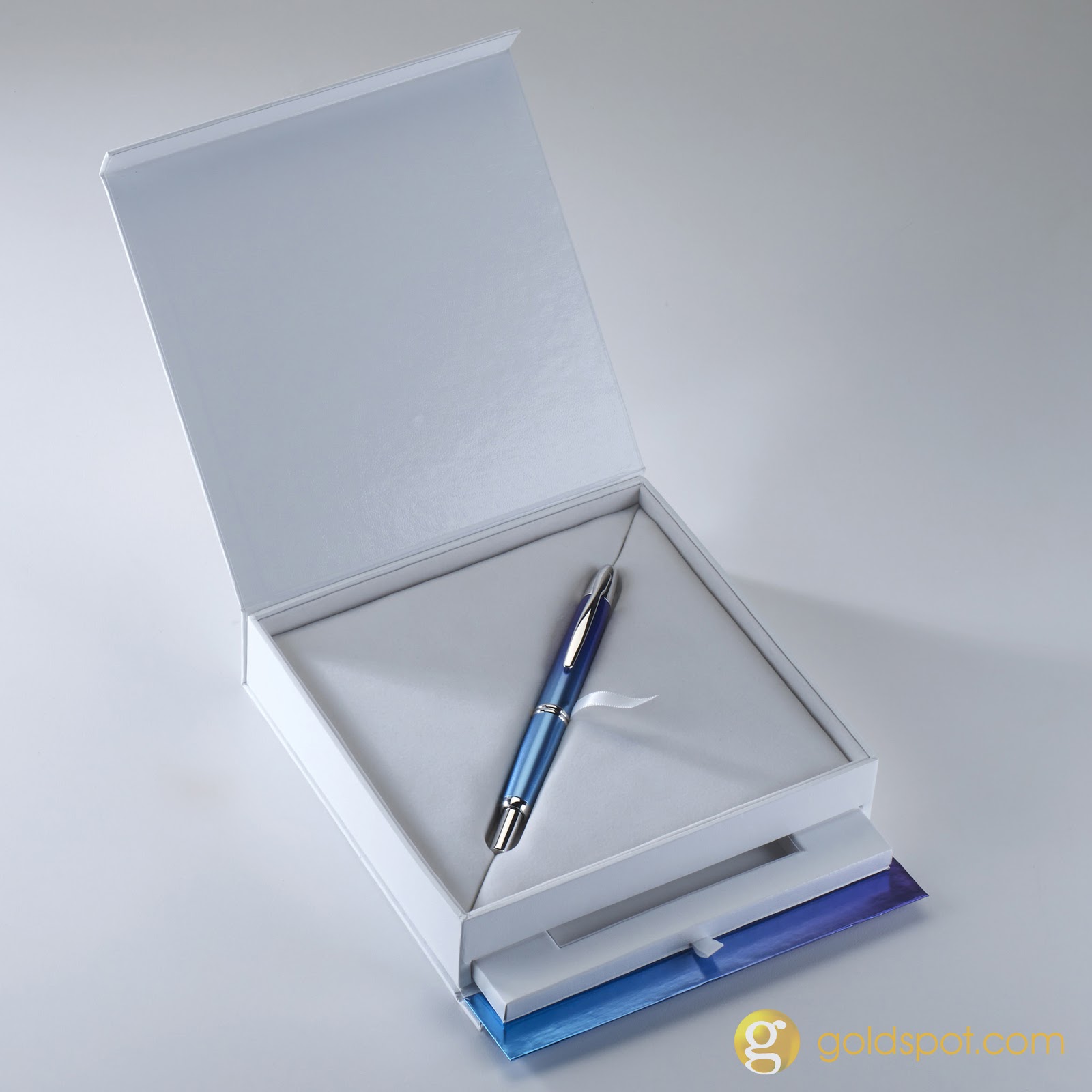 The Pilot VP Twilight is expected to list for $240 and is available with the factory-installed medium point 18kt gold nib with rhodium plating. Upon request, we can exchange that nib for any available rhodium-plated nib size, including extra-fine, fine, medium, broad or the new 1.0mm stub. Each pen is presented in an exclusive edition gift box seen in the image above.