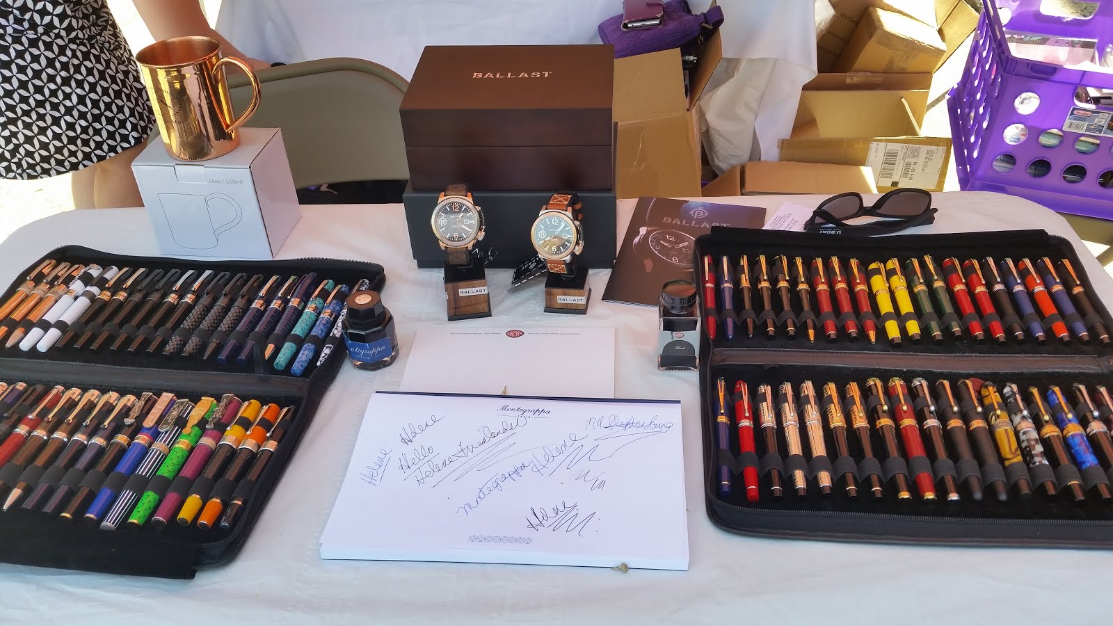 Thanks to the support of Kenro Industries and Blueline Rediform, we had two awesome reps from each company come out to set up their own tables and show off some of the latest and greatest pens. Below is Kenro Industries' Neil L. with his spread of Aurora and Montegrappa pens with a couple of Ballast Watches to throw in some luxurious variety.