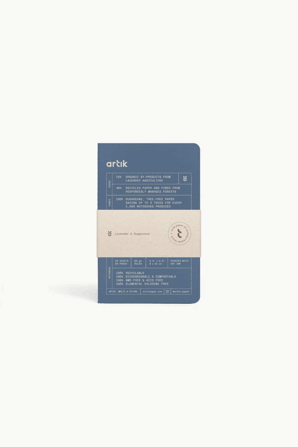 - Hardcover: 15% made from Lavender agriculture & 40% recycled paper + fibers from responsibly managed forests