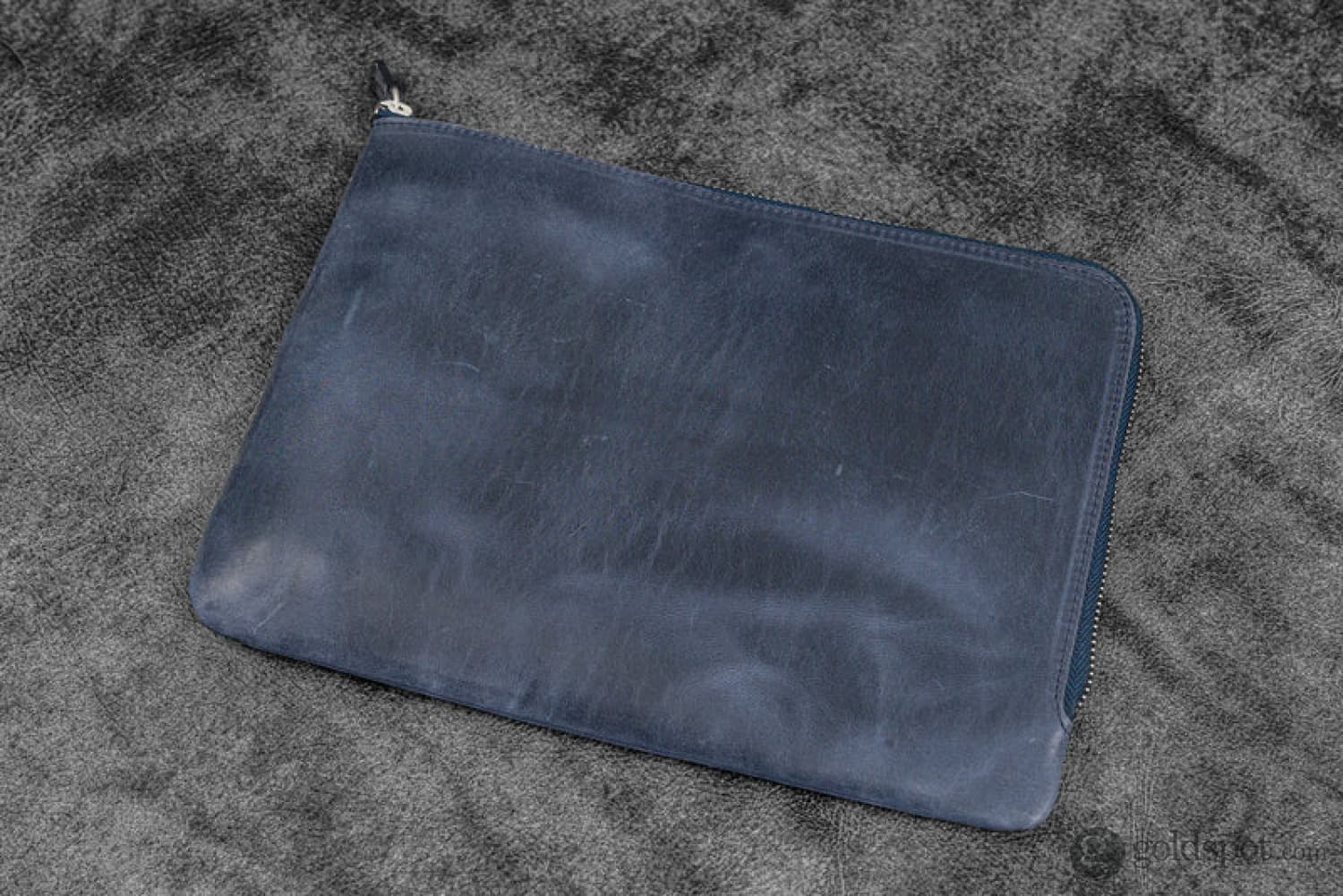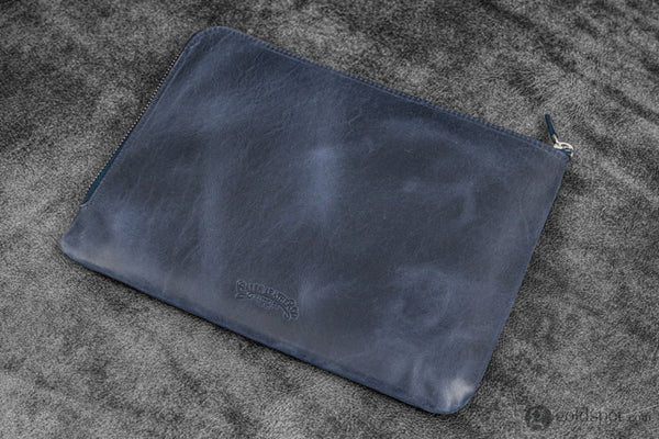 Galen Leather Zippered Writer’s Bank Bag in Crazy Horse Navy Blue Pen Cases