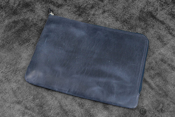 Galen Leather Zippered Writer's Bank Bag in Crazy Horse Navy Blue