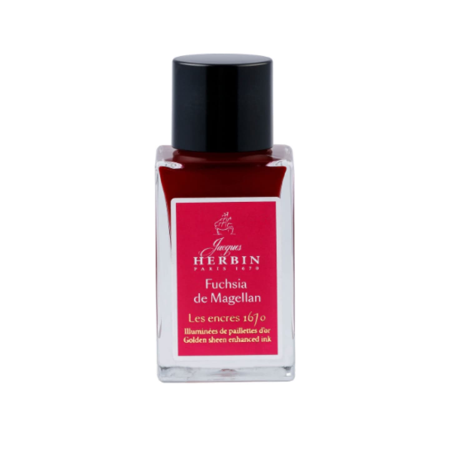 Celebrate discovery and color with J. Herbin 1670 Fuchsia de Magellan, a vibrant, contemporary shade illuminated with a delicate cloud of golden shimmer. Founded in the heart of Paris in 1670, Jacques Herbin is the oldest name in fine pen inks, known for blending history, craftsmanship, and artistic expression.