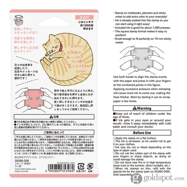 This stamp comes pre-filled with black oil-based pigment ink and is ready to use right out of the package. With enough ink for approximately 1,000 impressions, it’s perfect for chronicling moments in your notebook or diary, or adding flair to sticky notes and message cards. Once the ink begins to fade, simply refresh it using our Midori Ink Refills (sold separately).