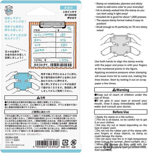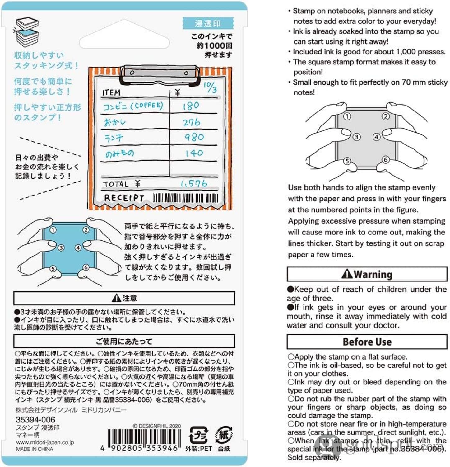This stamp comes pre-filled with black oil-based pigment ink and is ready to use right out of the package. With enough ink for approximately 1,000 impressions, it’s perfect for chronicling moments in your notebook or diary, or adding flair to sticky notes and message cards. Once the ink begins to fade, simply refresh it using our Midori Ink Refills (sold separately).