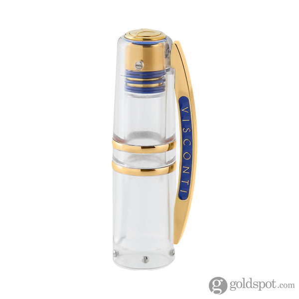 deep blue, contrasting elegantly with gold-plated metal parts, polished to a mirror